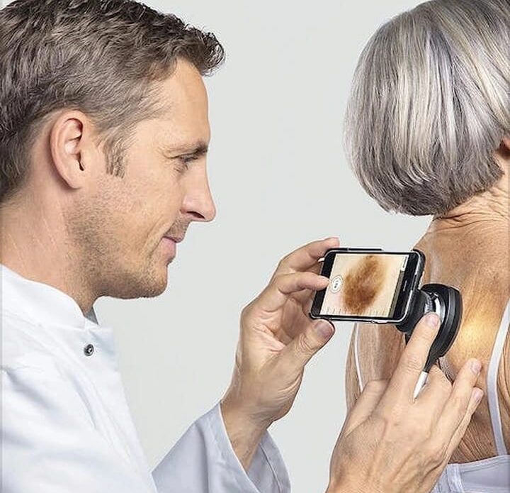 La dermatoscopía digital corporal consiste en un análisis exhaustivo de todos los lunares del cuerpo. Durante aproximadamente una hora, el paciente se somete a un estudio intensivo en el que se capturan imágenes de cada lunar mediante un dermatoscopio especial. Este dispositivo permite obtener fotografías de alta resolución, que luego son analizadas para determinar si los lunares son benignos, malignos o si requieren una biopsia o extracción.